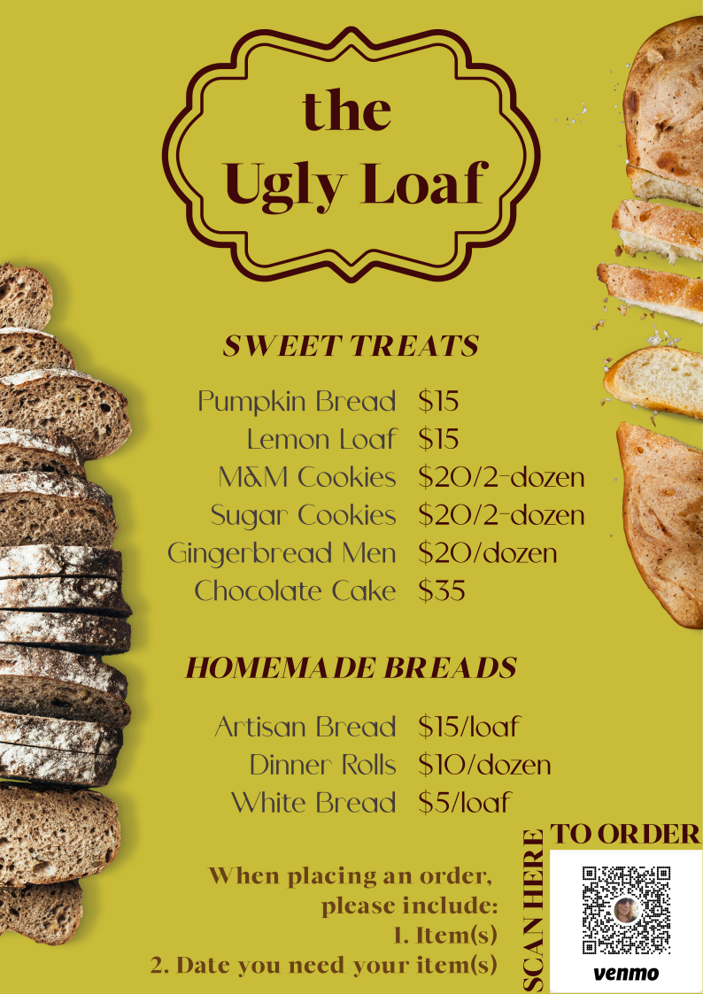 Here is a menu of what we've been baking lately and cooresponding prices